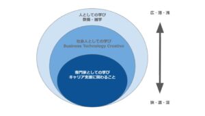 社会人としては、BTC(Business/Technology/Creative)に分けてスキルを磨き、人としてはリベラルアーツに代表される教養やもう少しライトな雑学など、話していて面白い深みのある人物を目指します。
